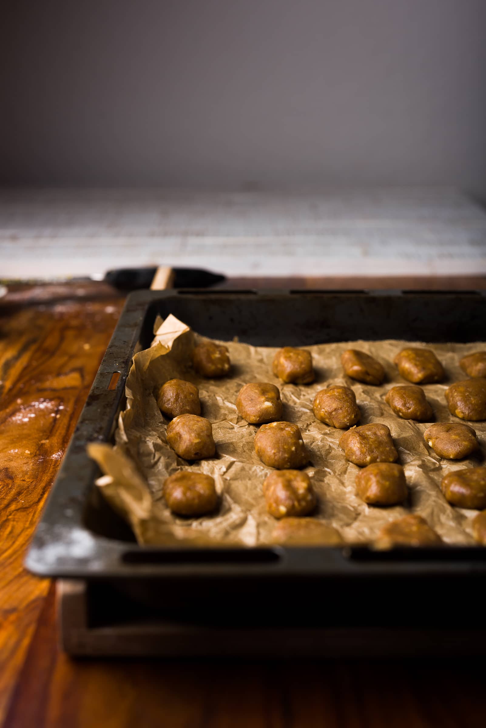 Posizionete le fave dei morti in una teglia foderata con carta forno.