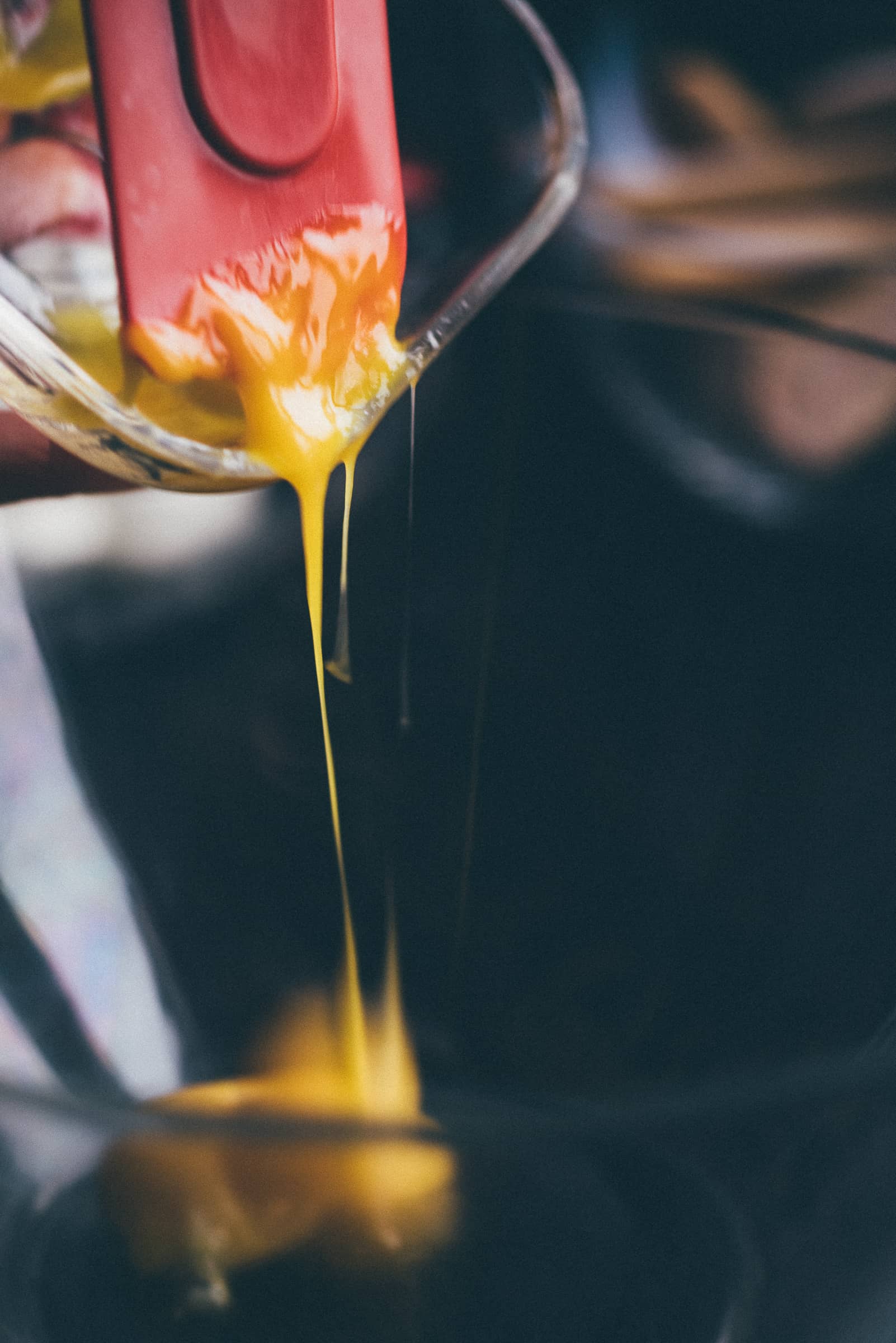 Sbattete i tuorli con lo sciroppo di zucchero fino al raggiungimento di una crema liscia e spumosa.