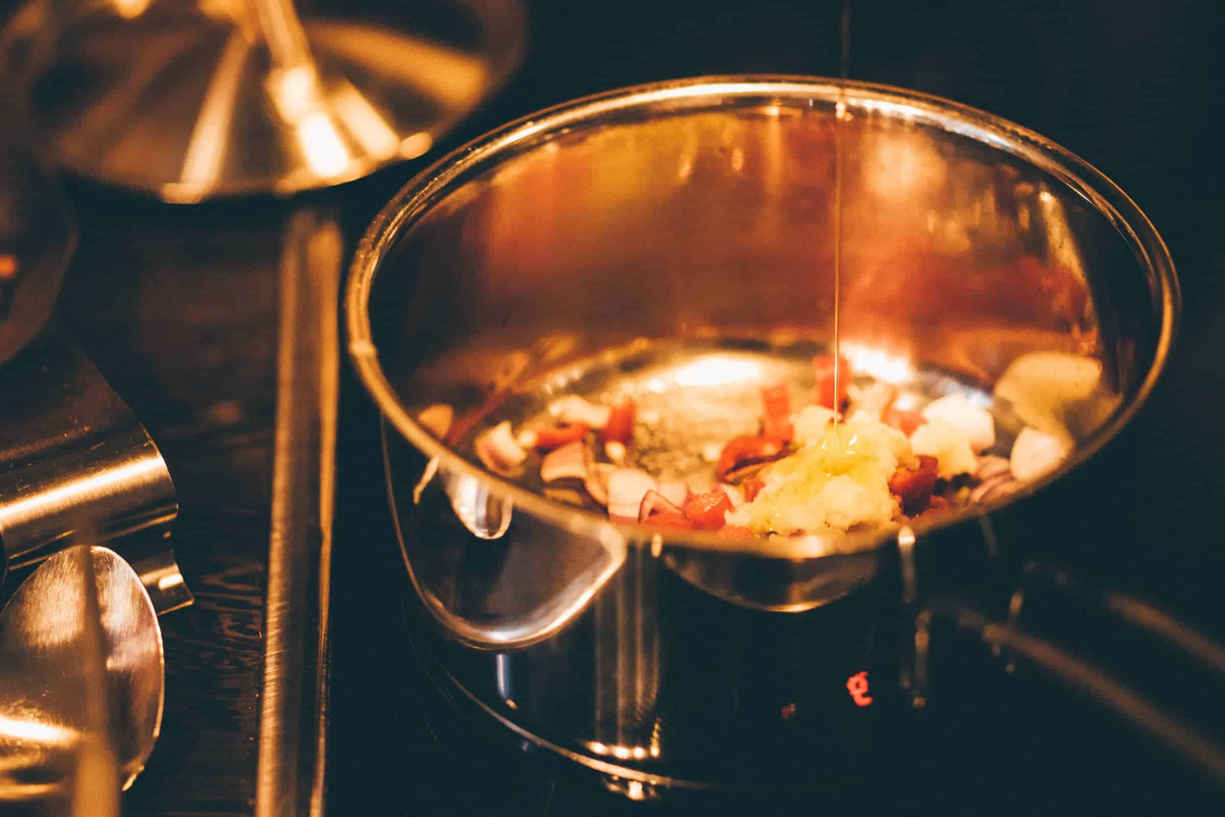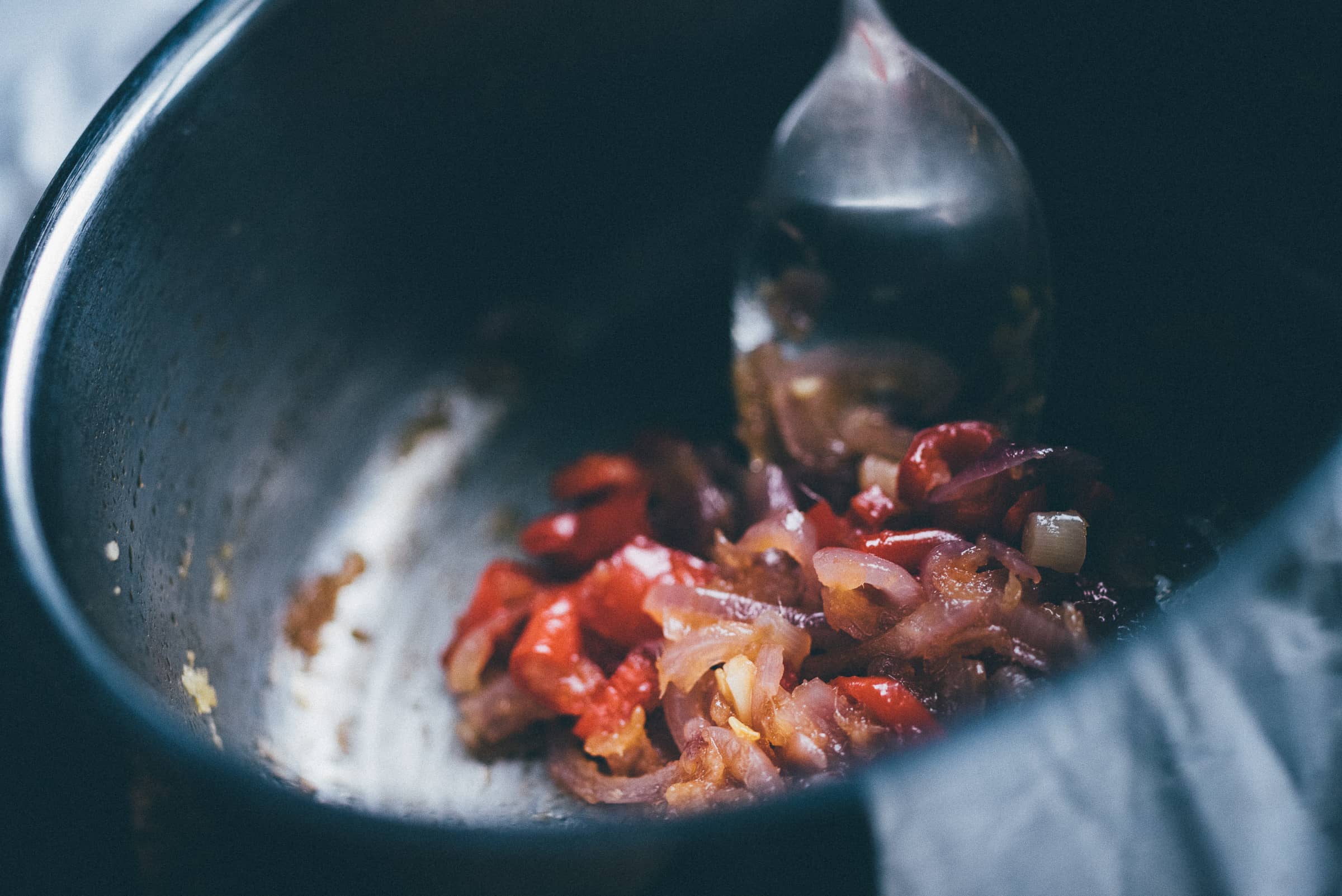 Lasciate appassire la cipolla e il peperoncino a fuoco molto basso.