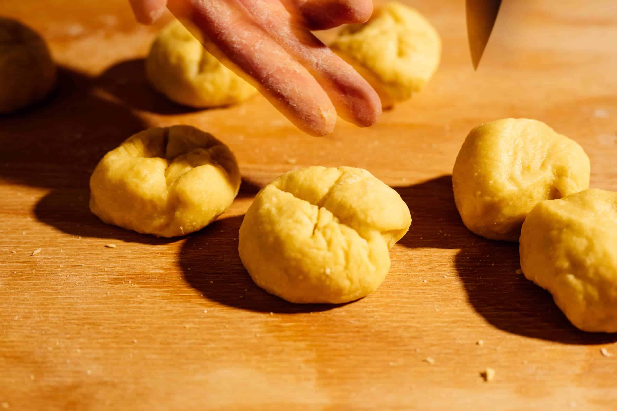 Incidete una croce sulla superficie delle palline, utilizzando un coltello molto affilato.