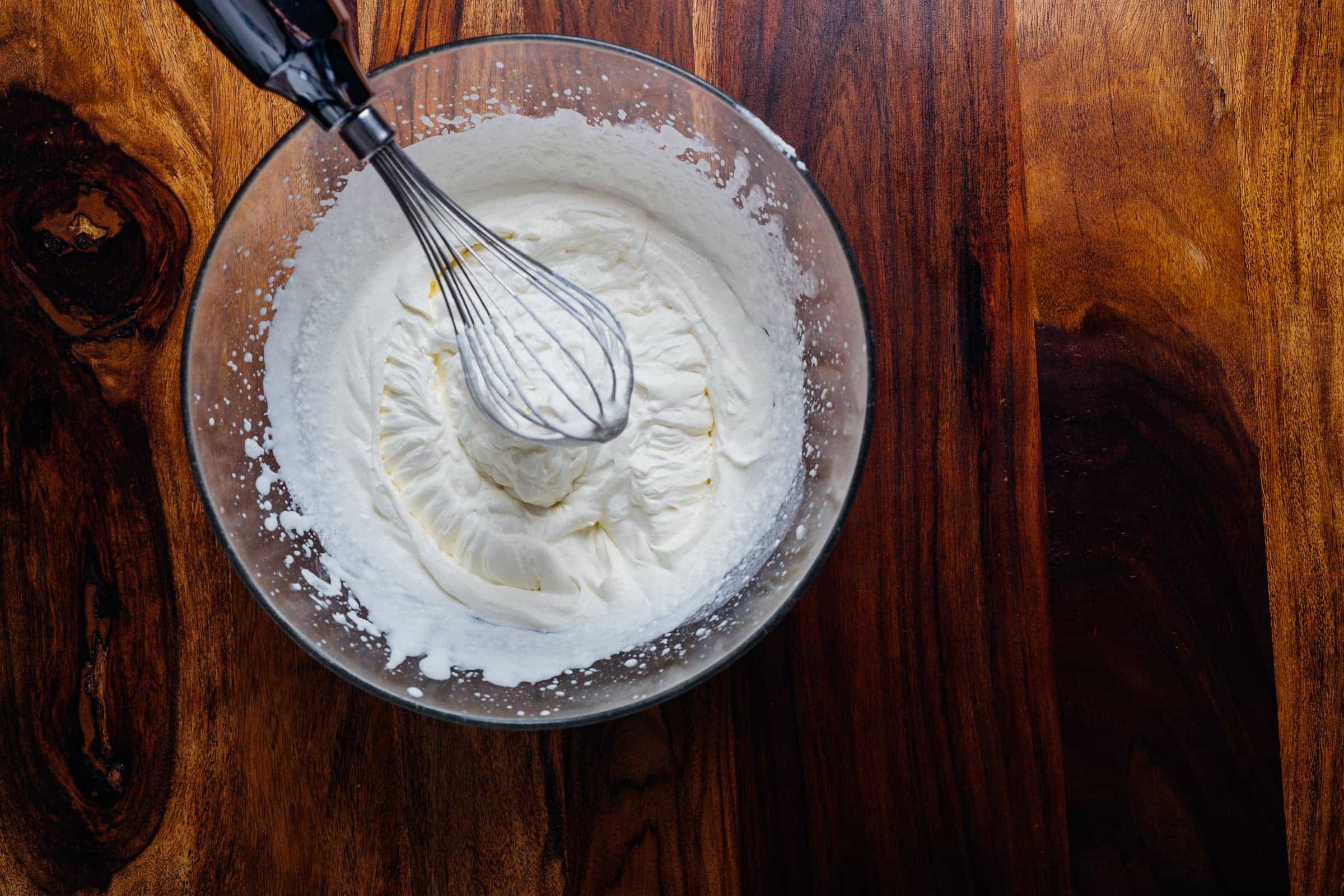Immettete la panna all’interno di un recipiente. Attenzione: la panna deve essere fredda al tatto e la temperatura ottimale oscillare tra i 7°C e i 13 °C. Conservare la panna nel frigo di casa andrà benissimo.